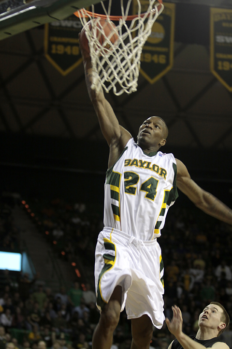 No. 24 guard LaceDarius Dunn lays the ball up against Oklahoma State University last Saturday at the Ferrell Center. Dunn scored 16 points and freshman Perry Jones III had 24 as the Bears won, 76-57.