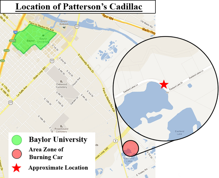 Baylor officials have confirmed that the Cadillac sedan found burning on Eastland Lake Road Thursday morning belonged to San Antonio Freshman Will Patterson.