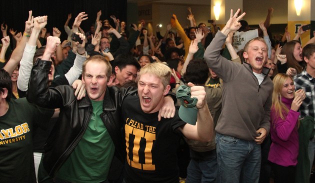 “I just went crazy,” he said. “We were at the Baylor network dinner. Everybody went nuts. There were 100 alumni in the room.”