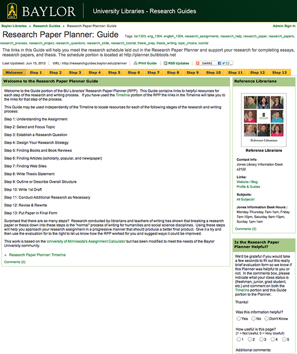 Carl Flynn, director of marketing and communication for Information Technology Services and Baylor Libraries, said the planner is geared more toward undergraduates, but is available to all students who need help organizing their paper.