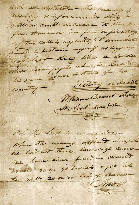 In the Feb. 24, 1836, letter, Travis, the Alamo commander, called on “the people of Texas and all Americans in the world” to come to the aid of Texans who were badly outnumbered by Mexican forces in a war for independence.