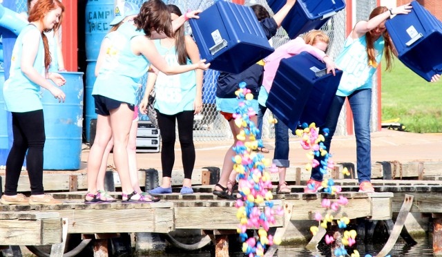 Delta Delta Delta hosts Duck Races at the Baylor Marina, where students can buy a ticket for a duck, and rubber ducks are raced to raise money for St. Jude Children’s Research Hospital.