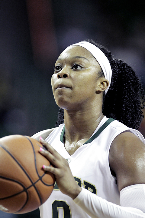 Share Facebook Twitter LinkedIn Pinterest Email Freshman forward Nina Davis celebrates after scoring a basket during the first half of Baylor’s 96-89 win over the Oklahoma Sooners on Monday at the Ferrell Center. Davis scored 28 points and gathered 14 rebounds during the victory. Baylor Big 12 Oklahoma women's basketball