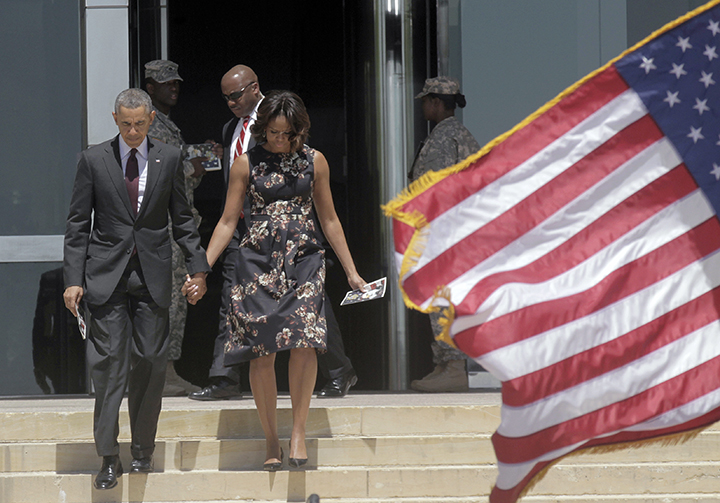 First lady Michelle Obama, House Minority Leader Nancy Pelosi, Lt. Gov. David Dewhurst and other dignitaries from the nation and state capitals joined Obama in remembering the fallen.