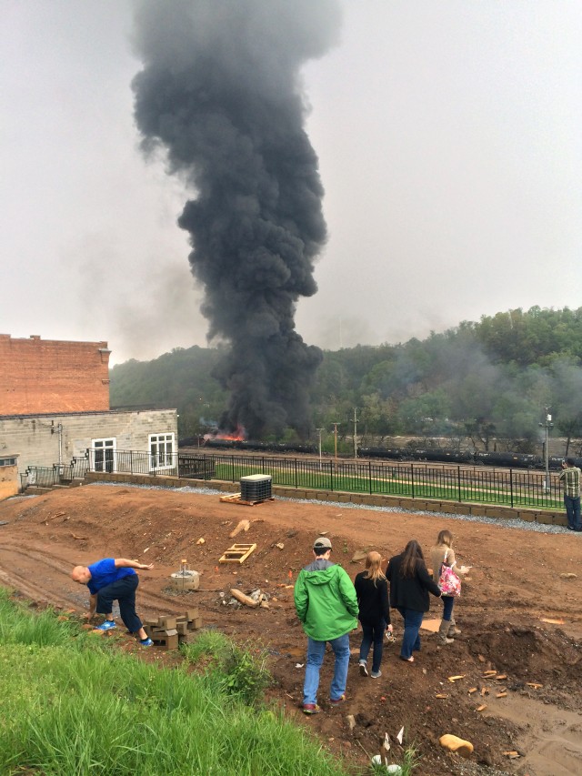 “We’re used to kind of bangs and booms,” said Gerald McComas, a security officer at foundry up river from the derailment site. “My first thought was it sounded like one of the guys started a motorcycle and then a realized, wait a minute, no … that was more of a boom. We walked outside and there was the smoke rolling in.”
