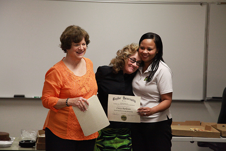 Dr. Cassy Burleson, senior lecturer of journalism, received an award for regularly bringing in a number of diverse speakers to her classes.