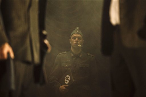 The group has denounced the play, saying it’s glorifying a war criminal. More than a dozen protesters dressed in uniforms like those worn by Jews in Nazi concentration camps stood outside Riga’s Concert Hall when the musical was shown there earlier this month.
