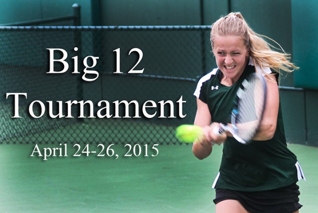 No. 37 sophomore Blair Shankle rallies the ball in Sunday’s Big Championship vs. Texas Tech. The Lady Bears won the match 4-0 to win the Big 12 Tournament. Hannah Haseloff | Lariat Photographer