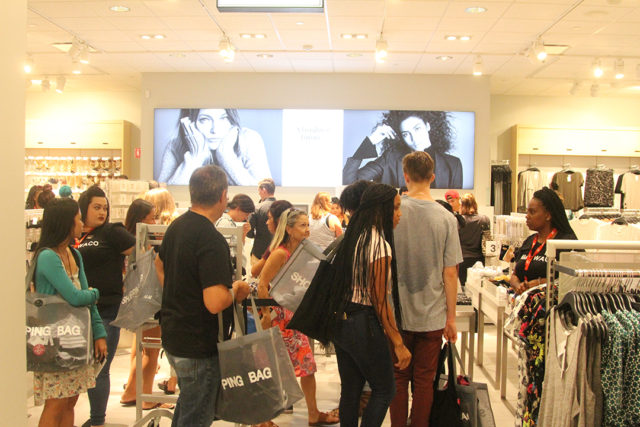 The first 100 customers in line were given scratch off coupons with a mystery amount of store credit up to $300. Within only 10 minutes of opening, customers filled the store, hands full of clothes to try on, and employees continually greeted new faces by handing them coupons and a shopping bag.