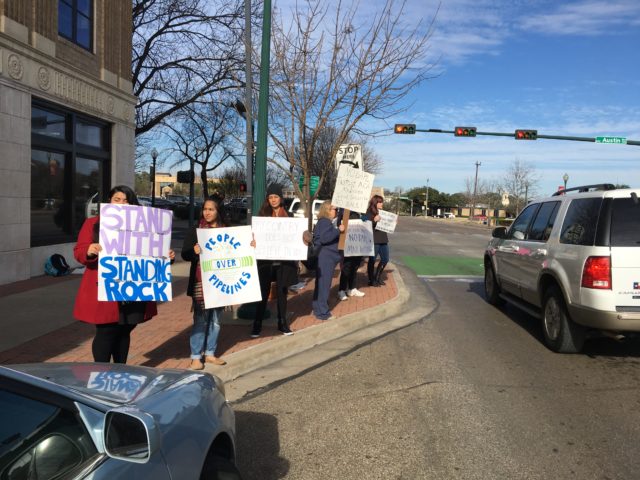 “We can’t destroy land, and especially not someone’s sacred land,” Waco resident and protest attendee Alyssa Ramirez said, referring to recent protests of DAPL in Standing Rock, N.D.