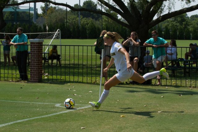 But Baylor did not let SMU’s lead last long. Less than two minutes later, junior forward Jackie Crowther delivered a corner kick to the middle of the box where sophomore forward Camryn Wendlandt was waiting to head it in for the game-tying goal.