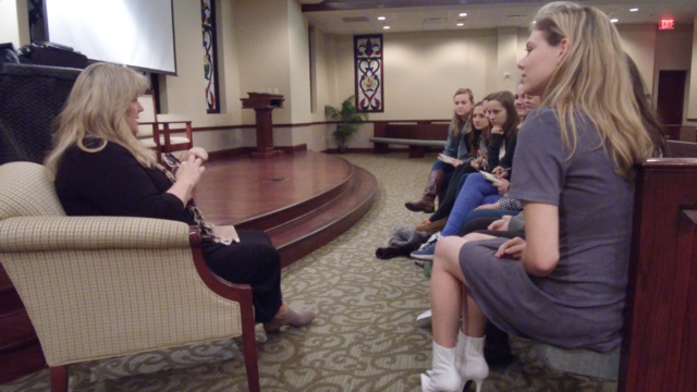 Philanthropist and bestselling author of “Love, Skip, Jump” Shelene Bryan met with a group of students Saturday night in the Stacy Riddle Forum to talk about her spiritual journey and to challenge attendees to be more proactive and intentional in their own faith .