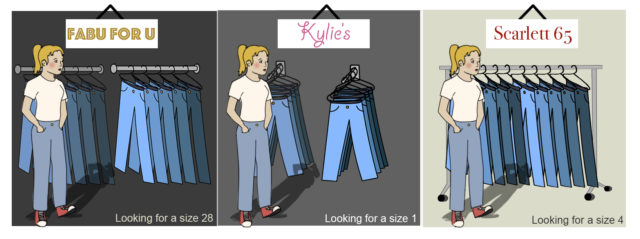 Not only is this annoying, but it can seriously affect shoppers’ self-esteem. For example, if a customer is just overcoming anorexia only to discover they have “gone up a size,” that’s certainly not going to help with their recovery.