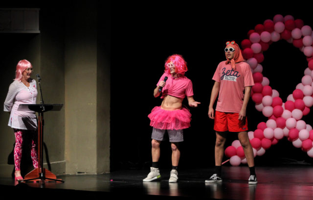 Several of the 24 fraternity members chosen for the pageant represented sororities on campus, while others represented their fraternity organization. Four breast cancer survivors served as judges that night.