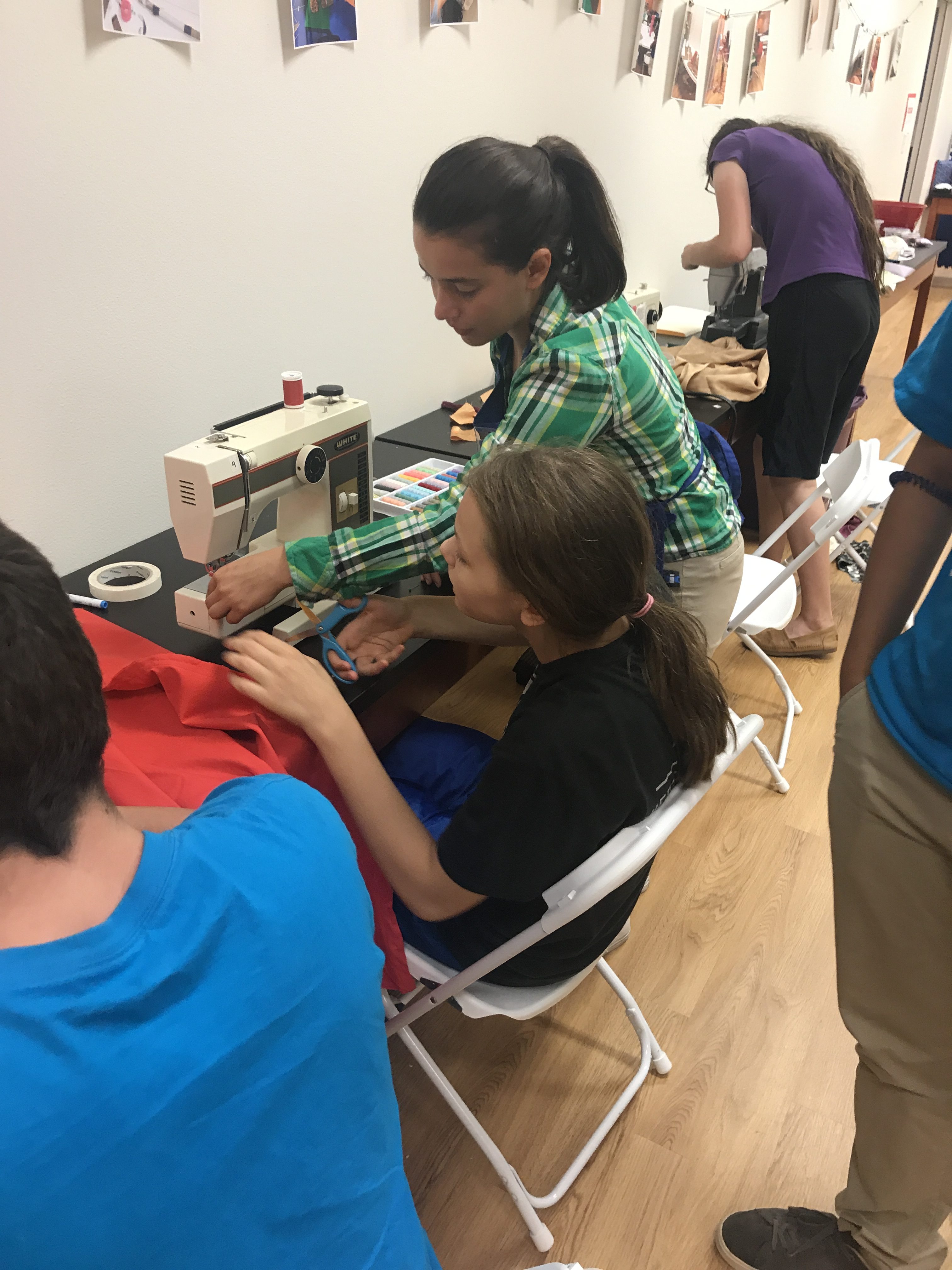 The interns help facilitate activities in a wide range of areas like sewing, woodworking, electric circuits and more.