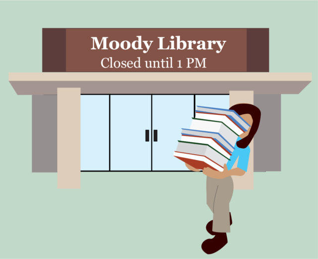 The most integral buildings on Baylor’s campus — such as Moody Memorial Library, the Baylor Sciences Building and the Paul L. Foster Campus for Business and Innovation — do not open their doors until 1 p.m. on Sundays, which does not allow for students to capitalize on one of the most peaceful and productive times of the day.