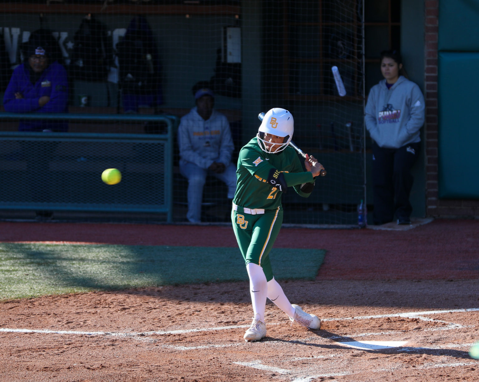 Baylor did their damage early, knocking in five runs in the second inning to take a 5-1 lead. Sophomore outfielder Josie Bower began the onslaught with a two-RBI triple into right field, scoring sophomore third baseman Lou Gilbert and junior Alyssa Avalos. Sophomore Casey Shell singled into left to score Bower, and four batters later senior Taylor Ellis drove in two more runs with a double to center field.