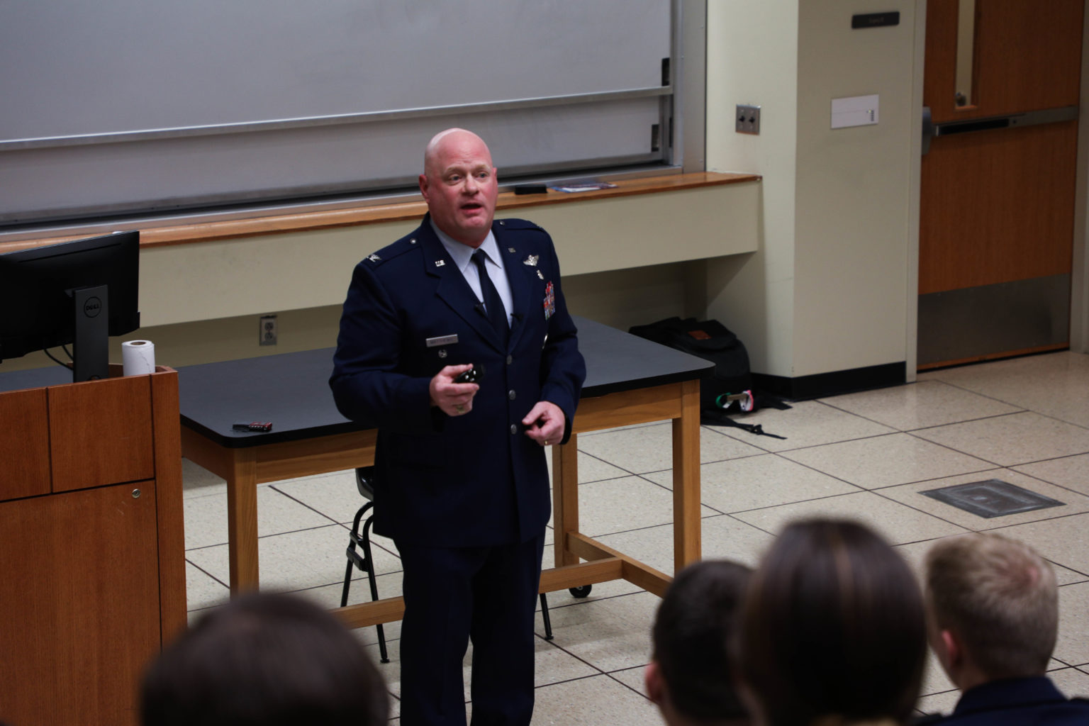 “The most important thing that I want you to take away [from the lecture], is I want you to be excited for where we’re going. For what we’re doing. For what you are about to be a part of,” Matthews said. “I want you to remember that America is committed to ensuring unfettered access to, and freedom to operate in, space. That’s what space force is all about. Making sure that anyone who wants to go to space can go there and operate freely.”