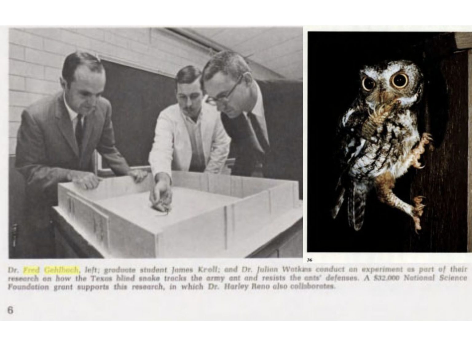 This year Gehlbach received a special achievement award from the World Owl Hall of Fame for his studies on eastern screech owls and other small owls.