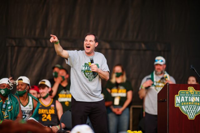 Scott Drew, head coach of the Baylor men's basketball team, gave an invigorating speech at the parade singing the praises to his players, staff and the administration for all the support that has been poured into the program. Cole Tompkins | Photographer