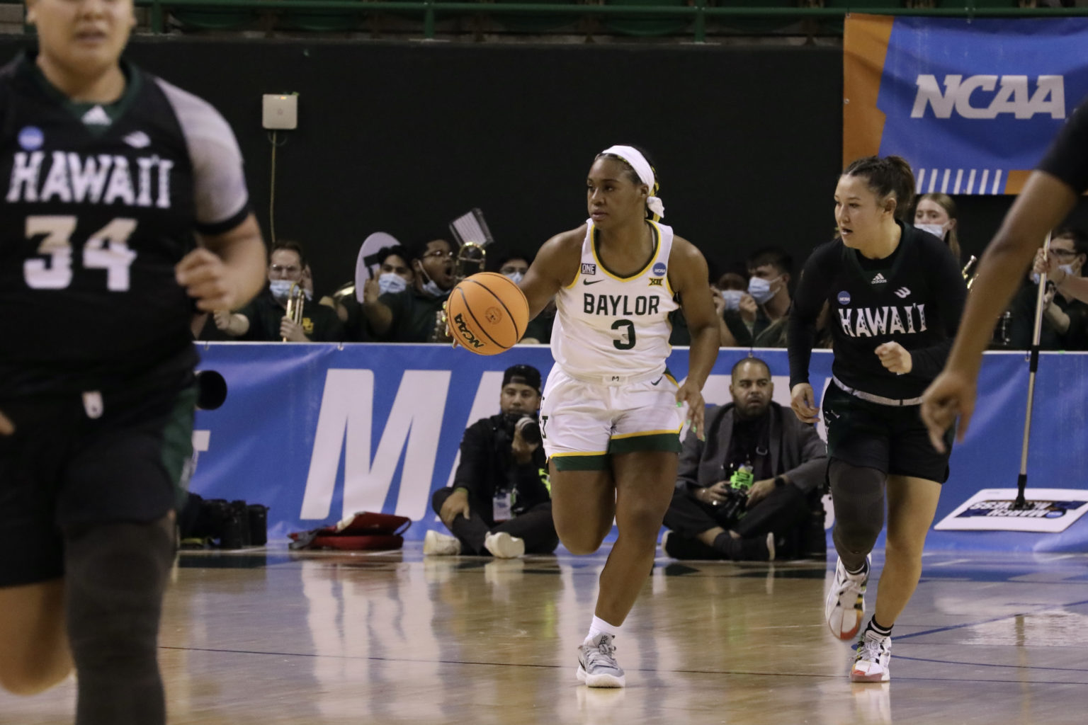Both squads brought strong defensive intensity in the first quarter as each team shot below 40% in the period. However, Baylor (28-6, 15-3 Big 12) was able to find a rhythm late to take a 16-12 lead. The Bears came out strong to start the second, going on a quick run to push their lead to 10. Hawaii (20-10, 13-3 Big West) graduate forward Amy Atwell kept the Rainbow Wahine within striking distance with her ability to knock down the three-ball. Atwell scored 20 points in the first half (4-of-7 from three) to keep Hawaii’s deficit in single digits as the Bears led 38-29 heading into halftime. Lewis said they knew going into the break, that needed to change.