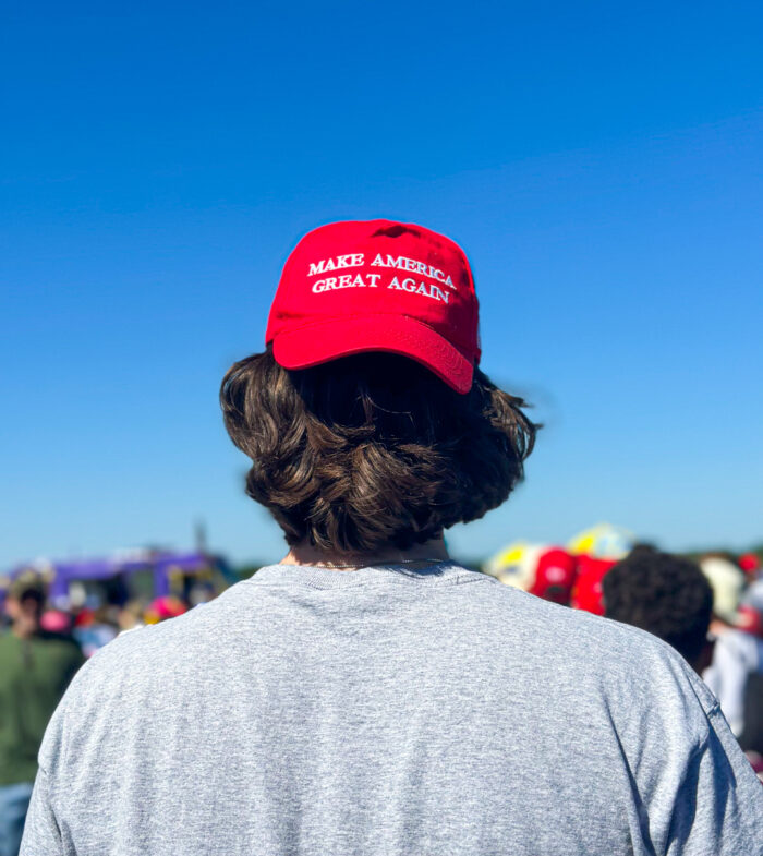 Thousands of Trump supporters wore merchandise like hats, shirts, pants and more and adjusted throughout the hot sunny day. Kenneth Prabhakar | Photo Editor
