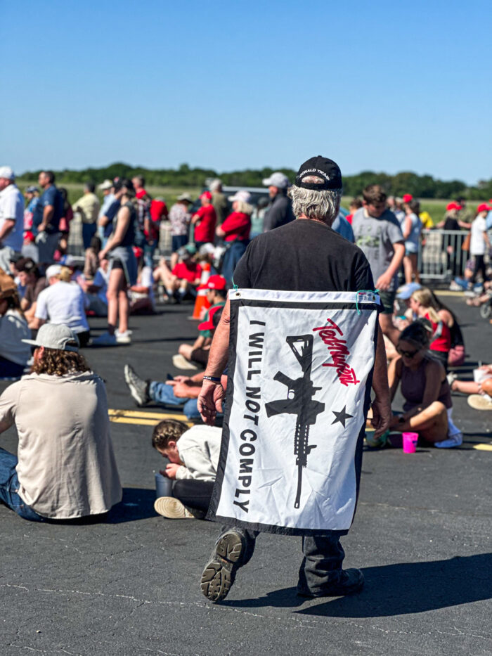 Throughout the Trump rally, many supporters brought merchandise showing rejection for gun control laws. Kenneth Prabhakar | Photo Editor