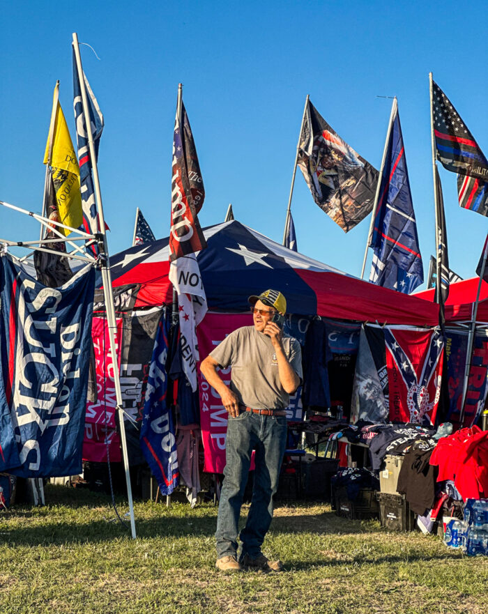 Trump supporters were excited to be back at a campaign rally again and sold a multitude of flags to the attendees. Kenneth Prabhakar | Photo Editor