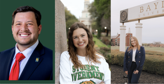 Baylor Student Government announced the winners of the 2023-2024 student election Friday night. The Woodlands junior Nick Madincea is Student Body President, Aurora, Colo., junior Lily Davis is External Vice President and Trophy Club junior McKenzie Arata is the new Internal Vice President.