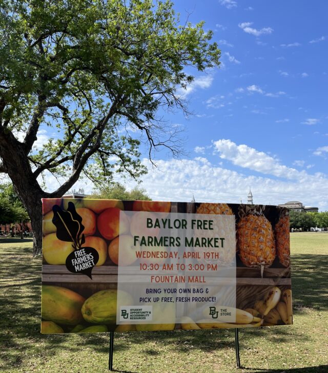Baylor’s Free Farmers Market will be taking place from 10:30 a.m. to 3 p.m. Wednesday on Fountain Mall. This year, event organizers added giveaways, a photo booth and more to encourage students to come out, get free food and aim to destigmatize food insecurity.