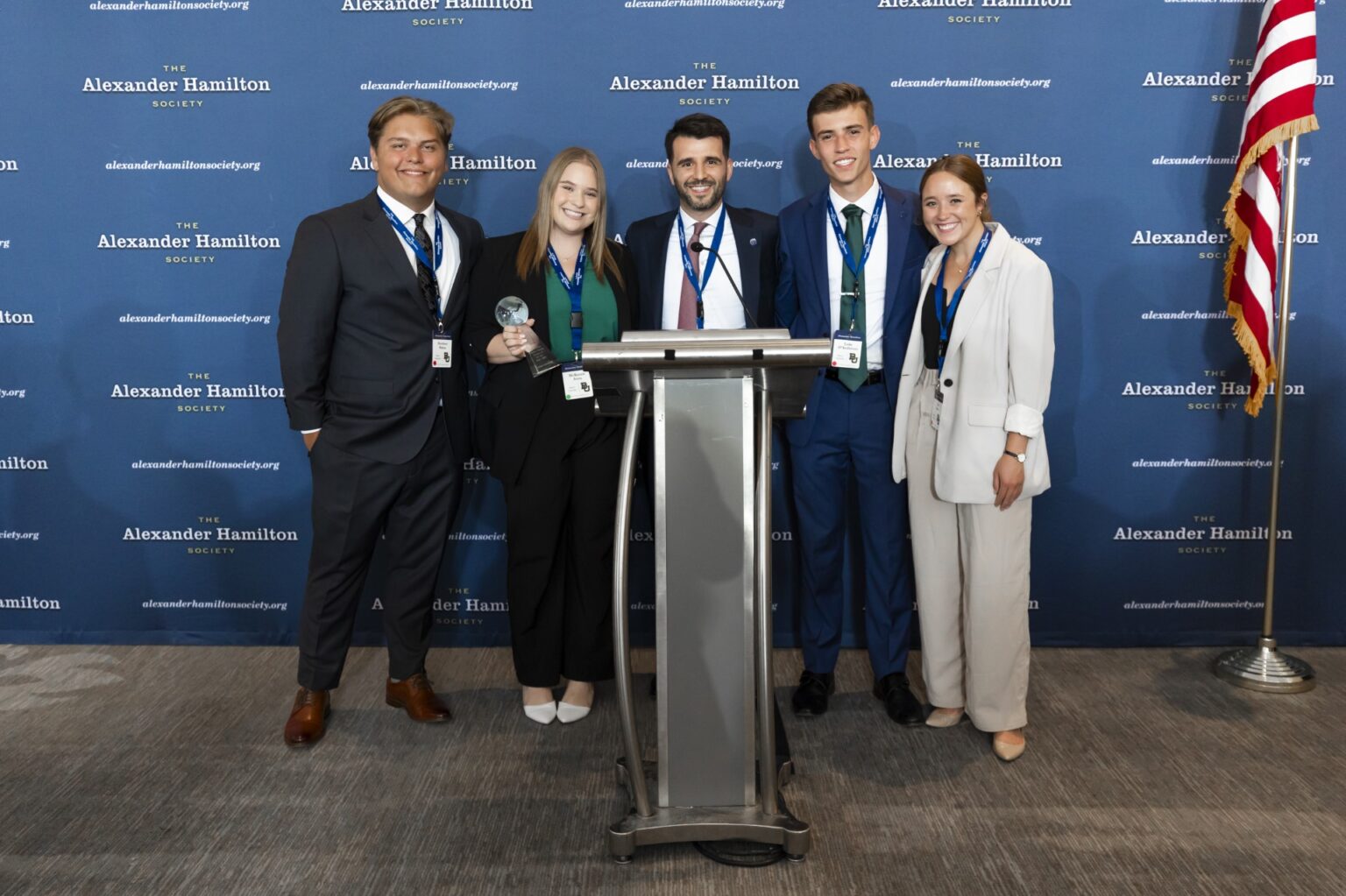 The Alexander Hamilton Society is an organization that brings speakers from around the country to speak to students at schools. Each chapter is responsible for hosting events for the speakers, and it is then given points based on event quality, attendance, professionalism and more.