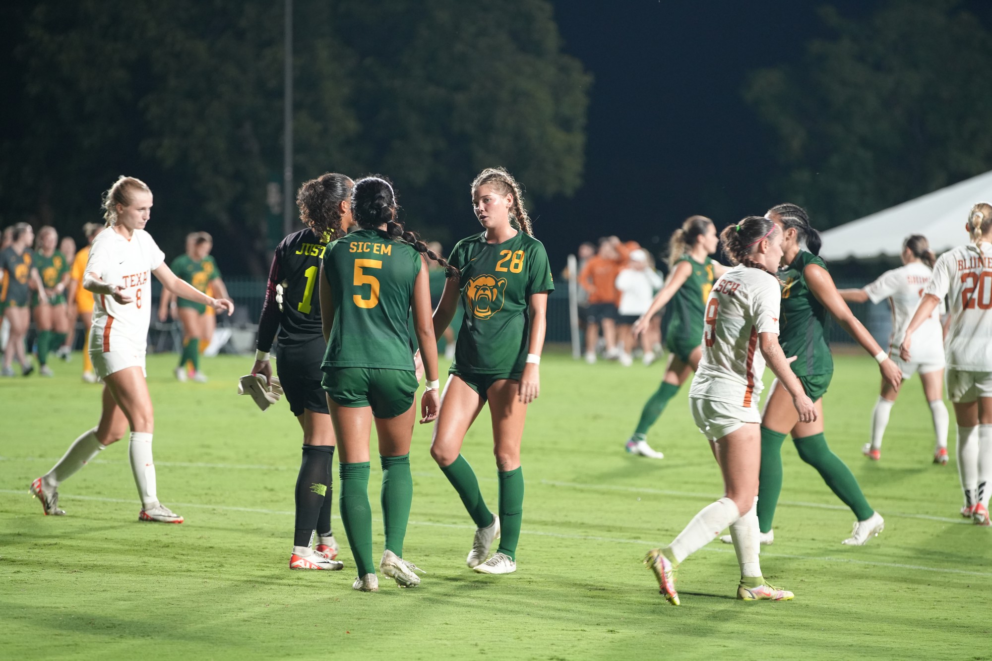 The Bears (4-3-1, 0-1 Big 12) played well in the first 45 minutes, as each team was scoreless heading into the halftime break. Sophomore goalkeeper Ashlee Zirkel displayed athleticism and confidence early by recording six first-half saves, highlighted by back-to-back diving saves in the 31st minute to keep the Longhorns (7-1-1, 1-0 Big 12) off the board.