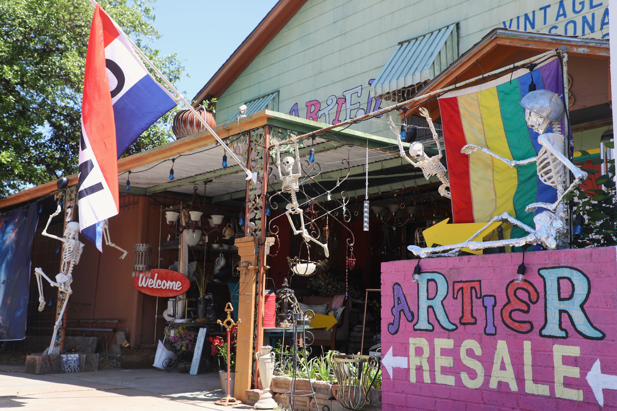 Another big commitment for Alexander and Artier Resale is inclusivity, with pride stickers on display. Alexander said pride is something that comes with a strong sense of individuality. Alexander has done his fair share of work with Waco’s LGBT community and drag groups, donning the persona of Anita Mann to raise money for the AIDS crisis in the mid 1980s.