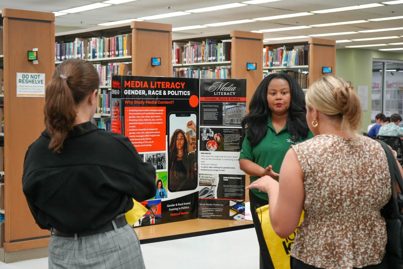 Topics such as media funding, AI, fact checking and fake news were put under a microscope during the event. Tri-fold display boards, slideshows and even games were used to help students better understand what types of media are reliable. After visiting each booth, students’ media passports were stamped, allowing them to receive a Dr Pepper float once they had finished the experience.