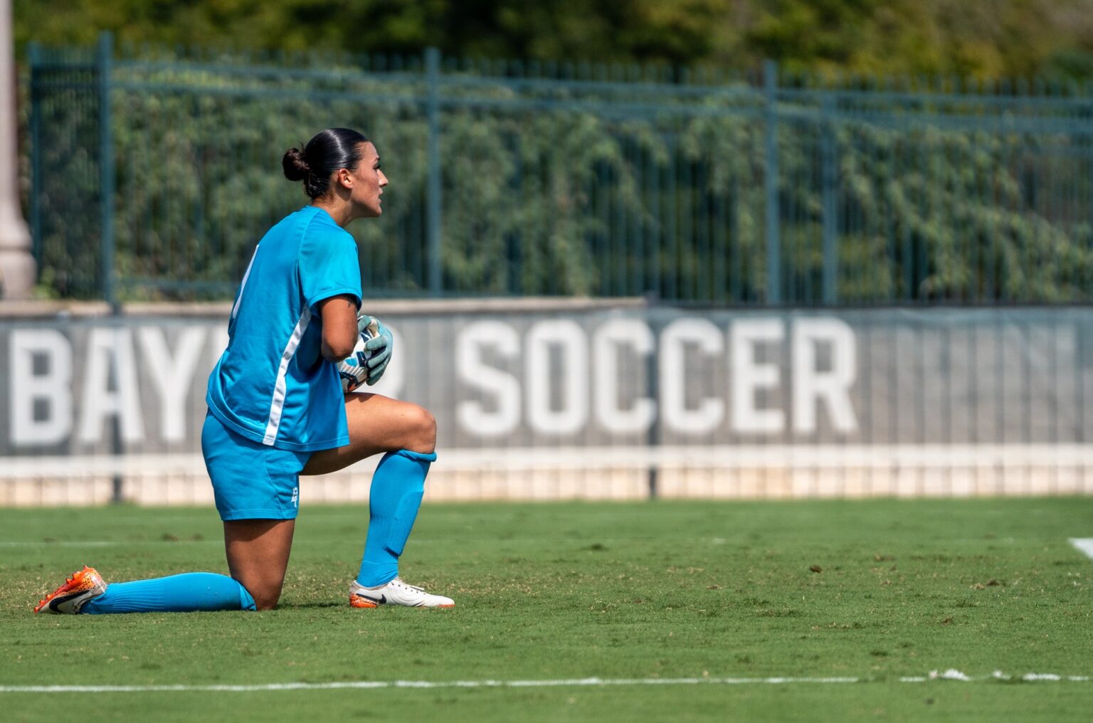 The first half was relatively slow-paced, with around 31 throw-ins dragging out the clock and keeping both teams from gaining much momentum. Junior goalkeeper Azul Alvarez was only tested twice by the Red Raiders (10-2-1, 5-01 Big 12), in the 24th and 29th minutes. The Bears (6-5-3, 1-3-2 Big 12) failed to put in a single shot on goal, leading to a blank scoreboard at halftime.