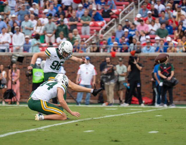 The redshirt freshman split the uprights on a 27-yarder in double-overtime Saturday to seal the Bears’ 48-45 upset victory over No. 17 SMU in a wild shootout. Baylor racked up over 600 yards of total offense and extended its win streak over its longtime Southwest Conference rival to 14 games.