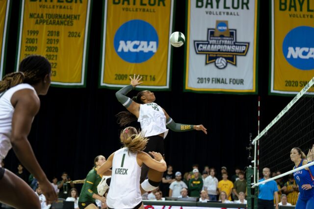 After going down 15-9 in the fourth set, Baylor found momentum off a Kansas timeout and a successful challenge from McGuyre to tie the set at 24. Kills from Davis and Rakhmanchik completed the rally to force a fifth set, where the Bears could not secure the win.