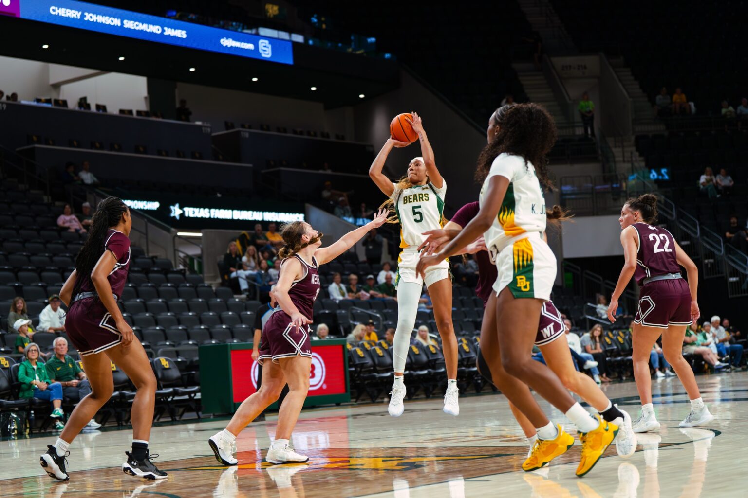 After opening the first quarter zero-for-four from the free-throw line and struggling to find rhythm offensively, Baylor relied on its defense to set the tone. The Bears held West Texas A&M scoreless for nearly four minutes and forced five turnovers in the opening frame to take a 16-5 lead after one.