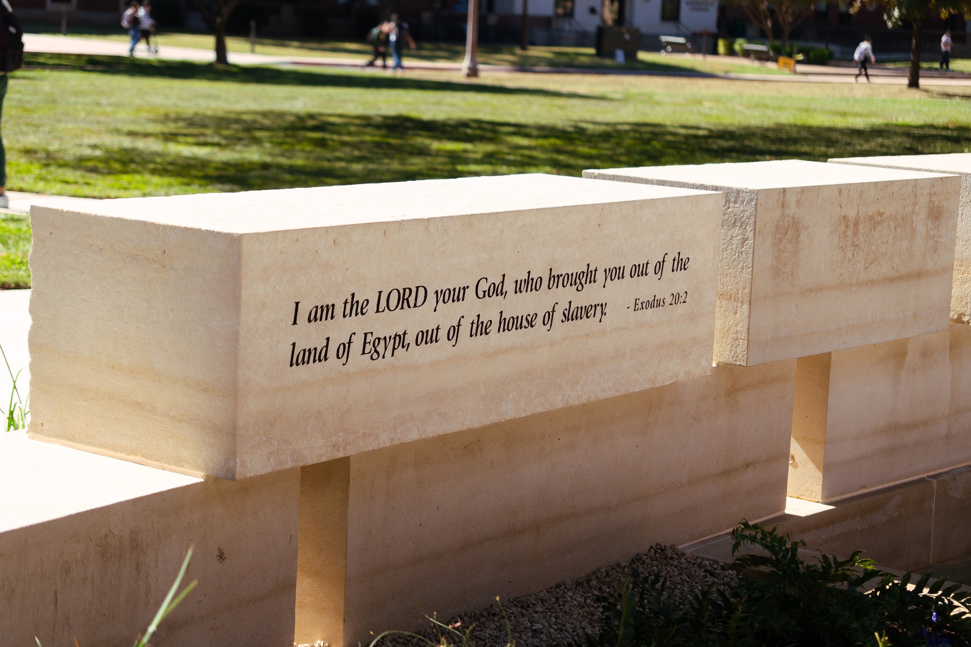 “[The fountain] is flanked by two scriptures, one being the way that the Lord introduces himself to his people, especially throughout the Old Testament: ‘I am the Lord, your God, who freed you from the land of Egypt, out of the house of slavery.’” Foley said. “And then on [the other] side Christ’s words in John 8, where he says, ‘If the Son makes you free, you will be free.’”