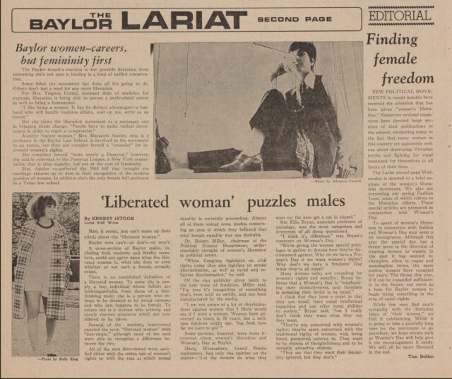 Women have been involved in The Baylor Lariat since its inception 125 years ago. According to the Texas Collection Digital Archives, the first issue in 1900 included two female associate editors: Eunice Taylor and Sarah Rose Kendall.