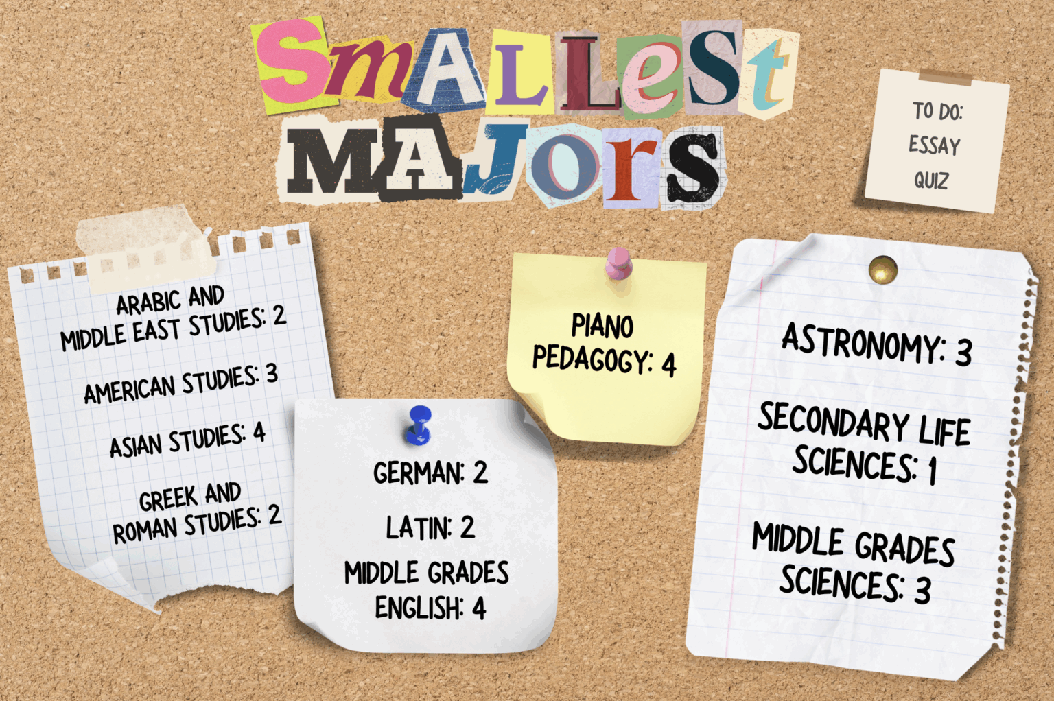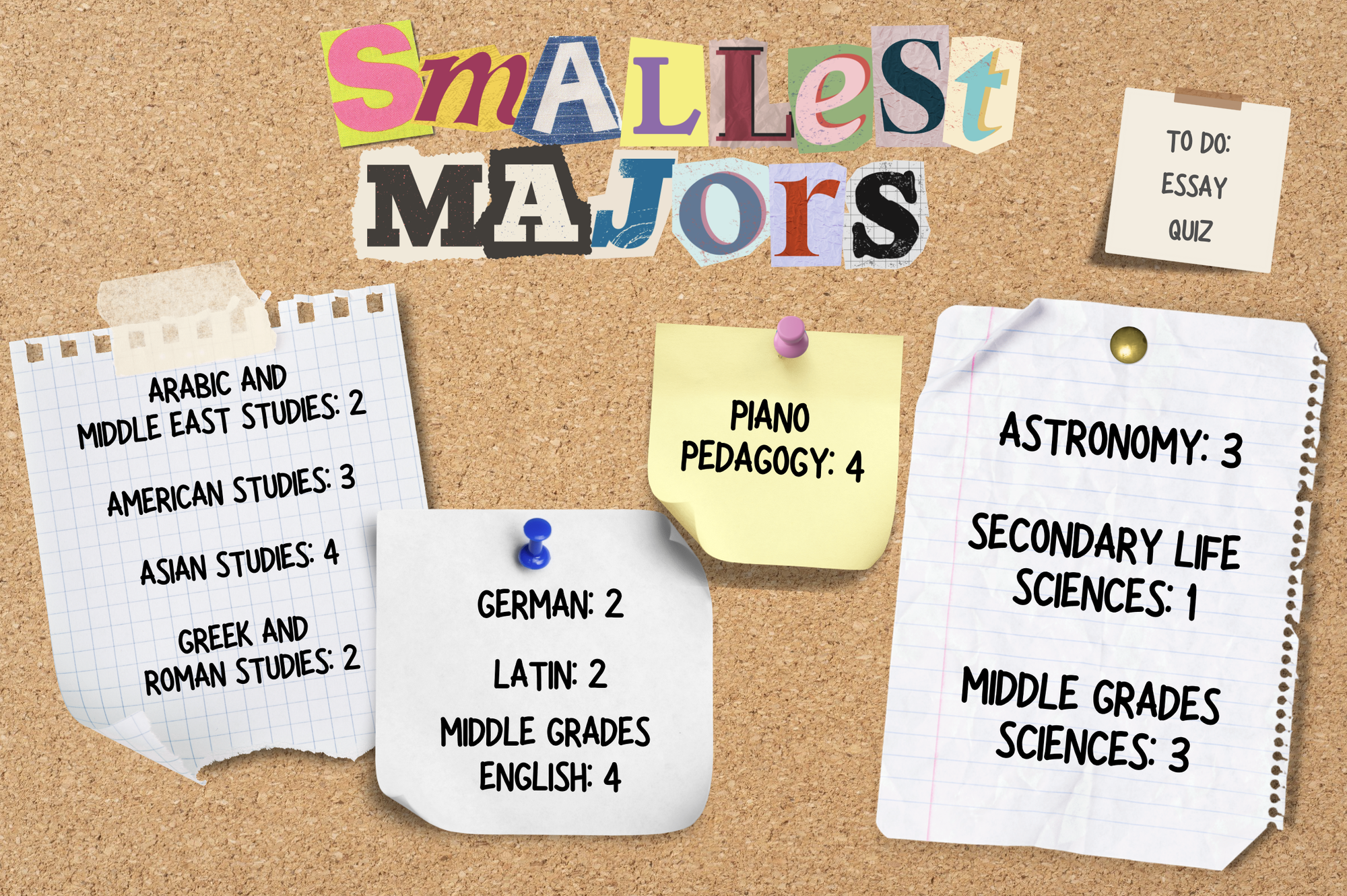 But when the top handful of disciplines make up a third of the class, a lot of those “less prominent” majors can shrink to the size of a nuclear family — or smaller. The Office of Institutional Research reports 11 majors with four or fewer students enrolled.