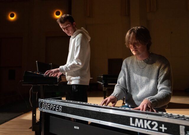 Dallas senior Carson Iltis and Austin junior Dylan Plant are set to debut “Genesis,” their first full-length electronic music production created in the lab, at 7:30 p.m. Tuesday in Jones Concert Hall. The one-night-only performance blends live instrumentation, immersive sound design and curated lighting effects into what the pair calls an “audio-cinematic journey.”