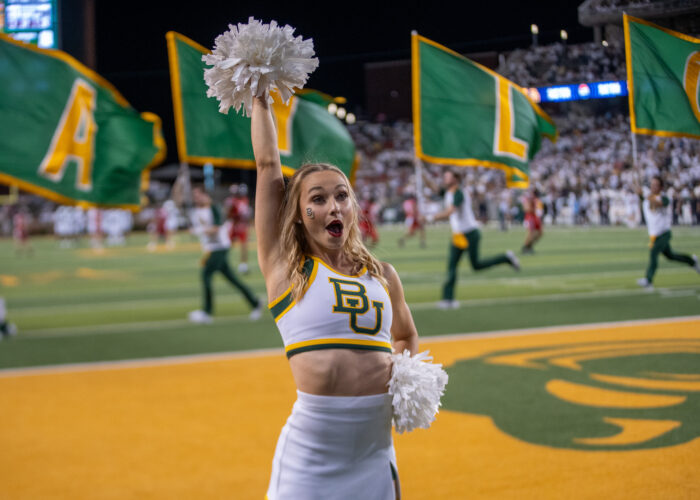 - A Baylor Spirit Squad member cheers after a touchdown at the Baylor vs Utah football game on Saturday night at McLane Stadium. Caleb Garcia | Photographer