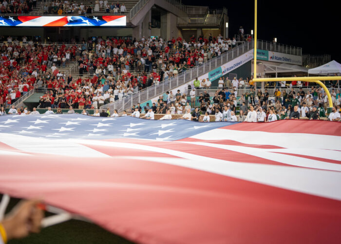 - The Star Spangled Banner was presented by the Veterans of Baylor, an on-campus organization comprised of retired and active duty service members. Sam Gassaway | Photographer