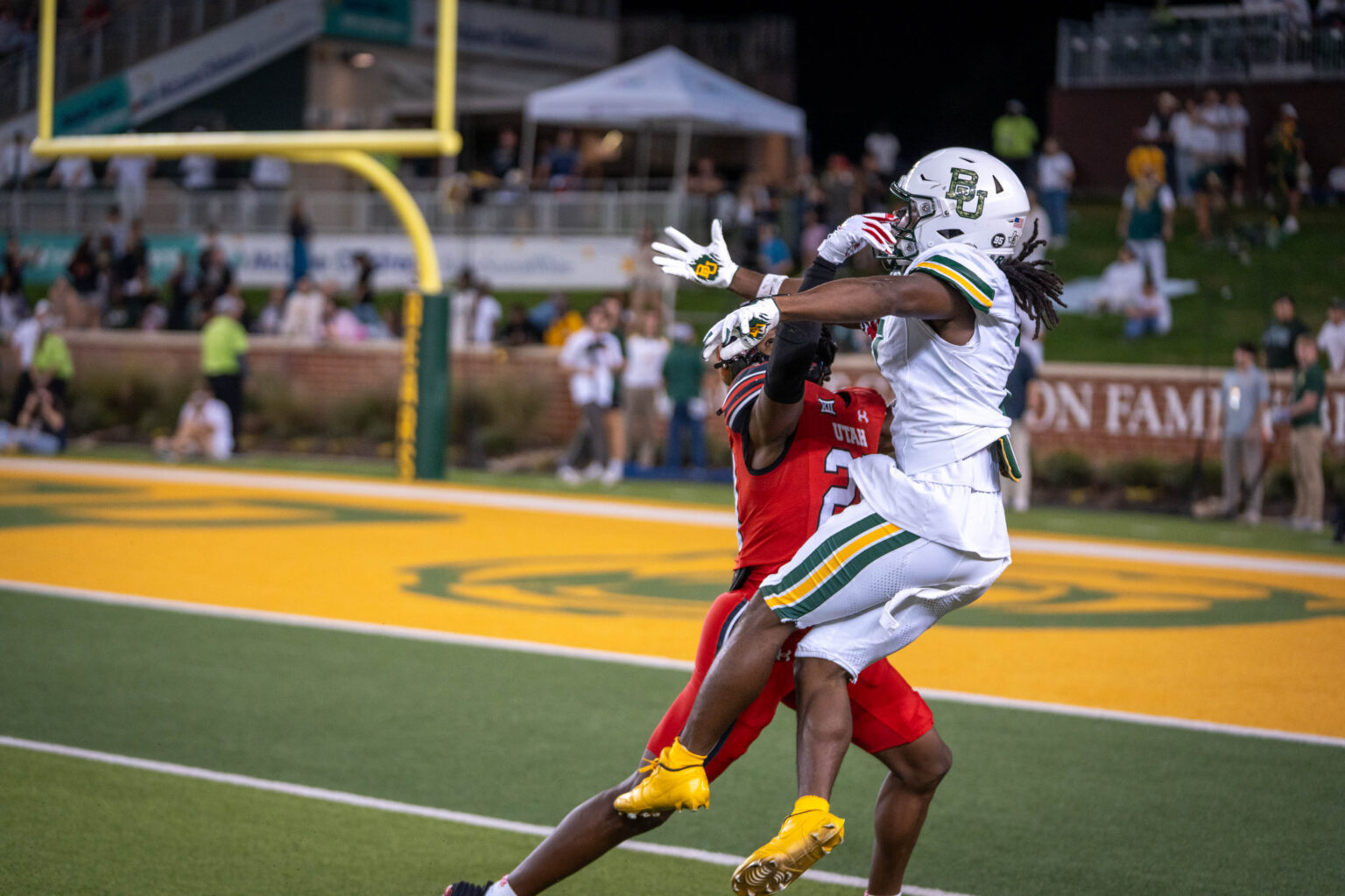The Bears had first-and-goal at Utah’s 5-yard line and ran the ball three straight times, each of which failed to reach the end zone. On fourth down, Robertson connected with Cameron for Baylor’s first touchdown of the game.