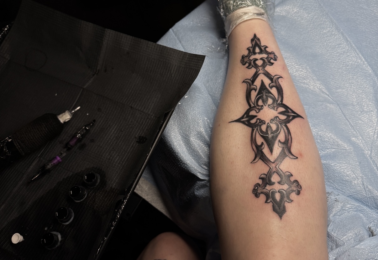 “I really like semi-realism and a lot of illustrative, gothic work, a lot of really small details, very kind of complex designs, lots of patterns,” she said. “I think it looks good on everyone and is just so beautiful — it’s one of the hardest styles, it takes so long with eight-hour sessions most of the time.”