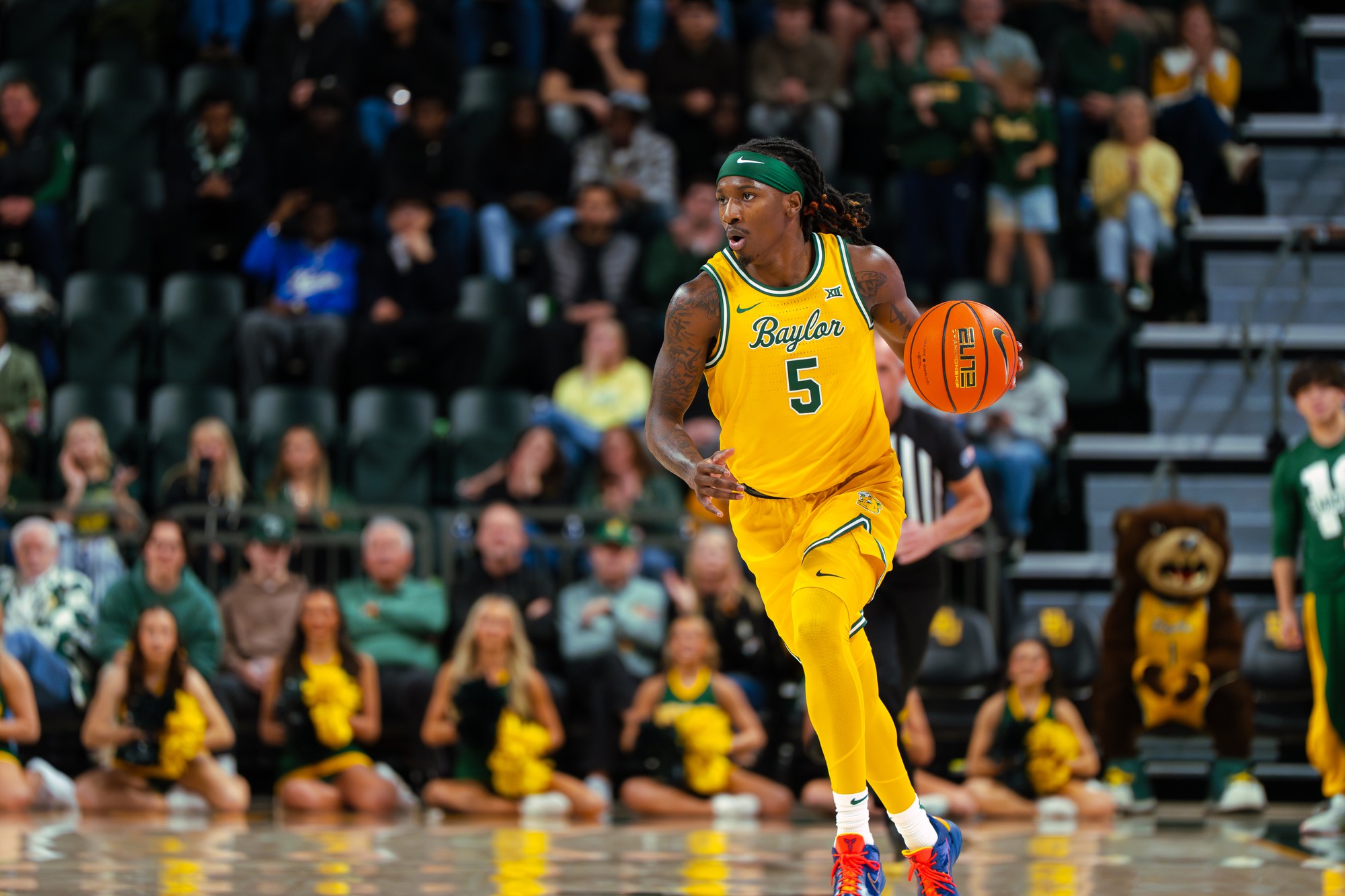Carr brought the green and gold back to the lead at the seven-minute mark, drilling an and-one 3-pointer to give the Bears the lead. Head coach Scott Drew’s squad built on the momentum to go on a 16–4 run, growing the lead to 35-26 with three minutes left in the first half.