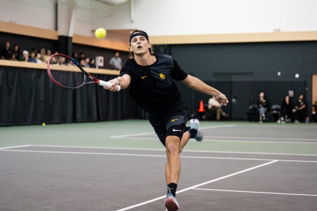Baylor started to turn the tables in singles. The Bears won the first set in all six matches, capped off by Badenhorst’s 7-5 victory that was welcomed by the Hawkins Indoor Tennis Center crowd.