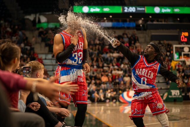 After a back-and-forth battle, the Globetrotters made a game-winning dunk to win the game in overtime, 93-91.