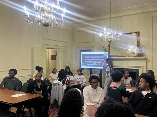 The event’s structure encouraged participation through several activities. Attendees “stepped forward,” an experience where students physically moved forward in response to shared experiences. Discussion time in small groups gave five different scenarios centered on prompts about navigating predominantly white spaces. And finally, they wrote and read aloud letters to their freshmen selves.